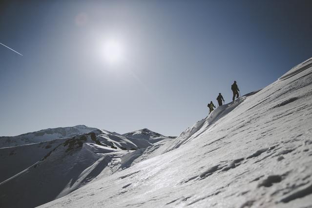When winter ends, the exploration continues. E-MTB and hiking trips take you deep into alpine terrain, wild valleys and remote ridges — the same untouched feeling, just without skis.