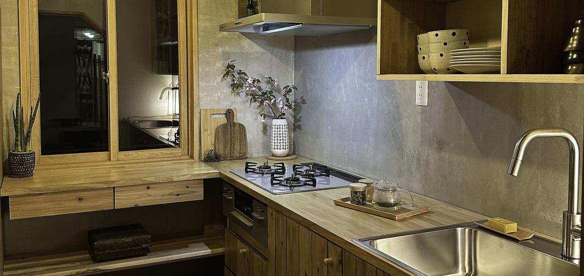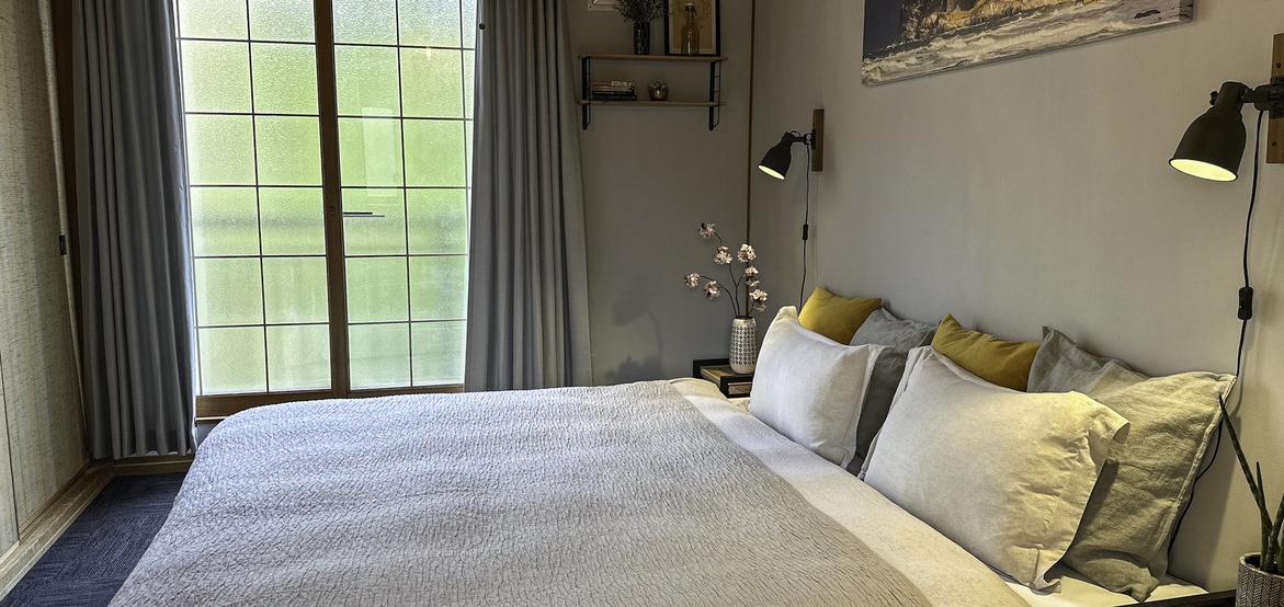 Inside, there’s a fully equipped kitchen, a freshly renovated bathroom, and a warm mix of hardwood and tatami for a traditional touch. Two bedrooms—finished with down duvets and organic linen—comfortably sleep up to 4 guests across 75 m² of living space. Perfect for a quiet, well-placed base between powder days.