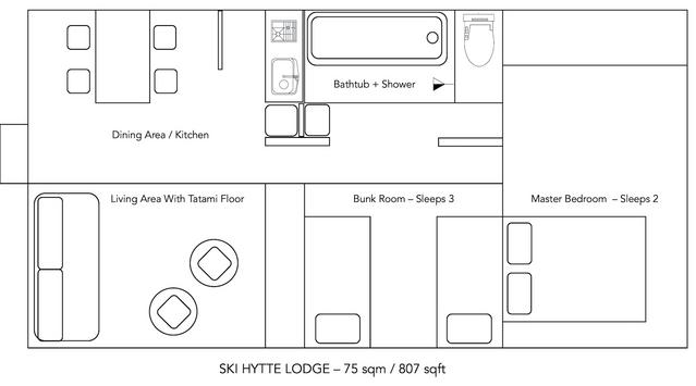 Settle into a cozy base with two bedrooms (2 + 4), a comfortable living–dining area, shower, toilet, and a dedicated gear-storage space. Interiors blend modern comforts with clean Japanese–Scandinavian design, creating an easy place to unwind after a day outside.