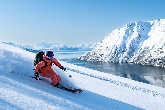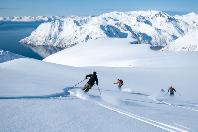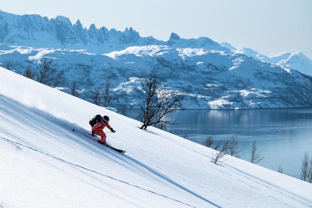 Lyngen Alps and the surrounding regions are among Scandinavia’s premier freeride destinations, known for drier snow due to their inland positioning. The goal is to ski a broad range of backcountry terrain: open powder fields, ocean-view descents, and classic ski touring lines.