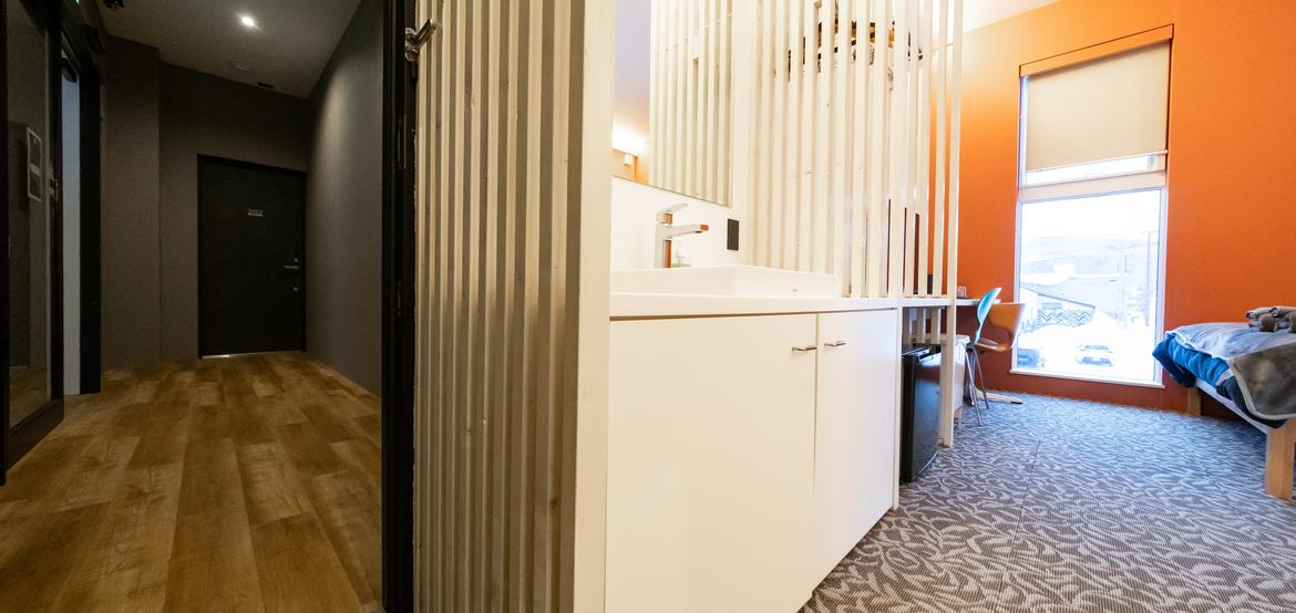 In Kutchan (Niseko area), your base is T-Box—a clean, modern stay in the heart of town, walkable to izakayas, cafés, bars and supermarkets. Comfortable twin or double rooms come with en-suite bathrooms, a fridge and kettle, plus a cosy café-bar, free guest washer and the bonus of a 7-Eleven next door for quick refuels.
