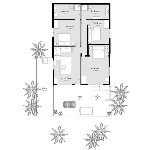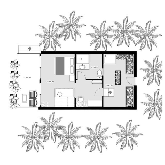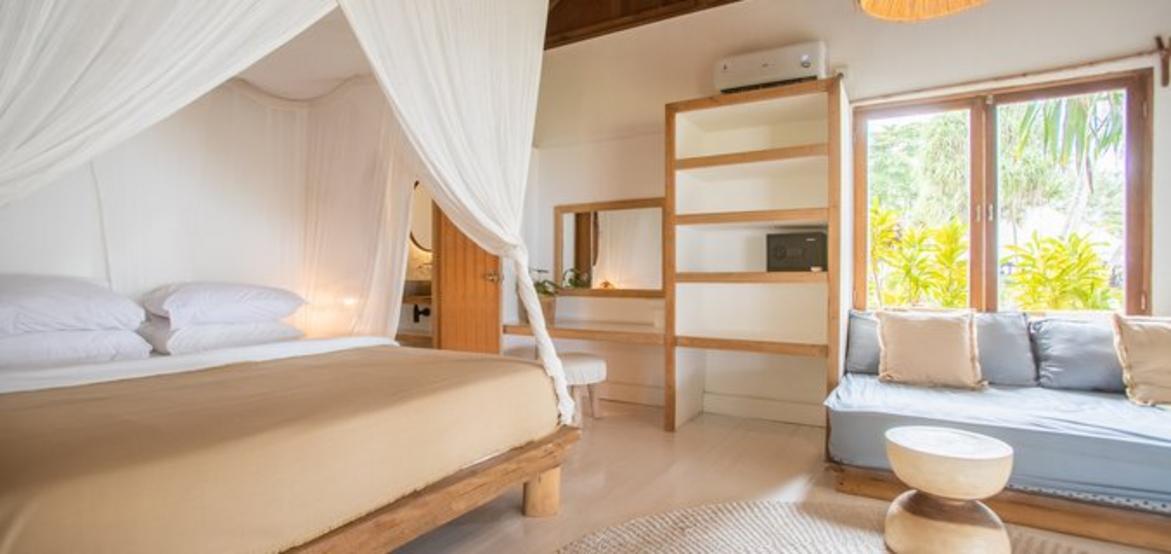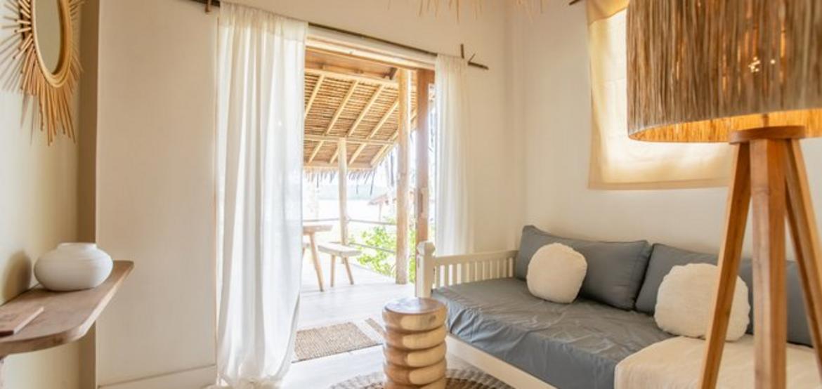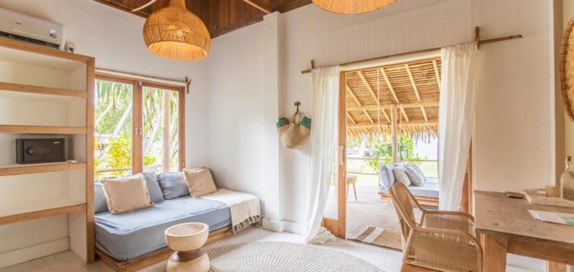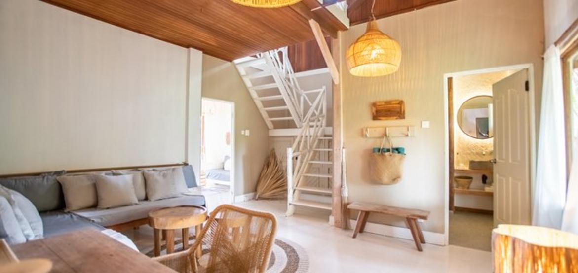 Nestled in a lush palm grove and overlooking the crystal-clear waters of the Indian Ocean, our seven identical one-bedroom villas offer the perfect island escape for couples or close friends seeking peace and privacy. Just steps from the beach, each villa blends coastal charm with natural simplicity, featuring timber floors, rattan furnishings, and a spacious private terrace.