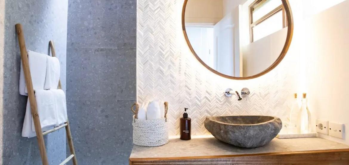 - Bathroom: A large, modern bathroom with both indoor and outdoor shower options, blending relaxation with nature.