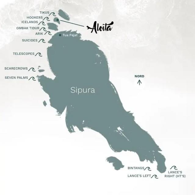 The hulking mass of Siberut presents a primal vista, with the hardwood forest shrouded in mist and it exudes an air of power and mystery, emanating from the mountainous interior. This largest island in the Mentawai chain has only been lightly surfed by long-range charter crews grabbing an opportunistic wave on the way to the Nias area. That means spots on the backside are more often seen from the northern tip at Tanjung Sigep, down to the impossibly sheltered Teluk Tabekat and out to the headland at Sikabaluan, but most will pass by like ships in the night. A good deal of the SW-facing coast is straight line reefs, exposed and messed up by wind and swell, but a few obvious jinks in the coast could produce a left or two at Tanjungs Sakaladat, Sataerataera and Simasuket. Many captains will have a few spots sussed for certain conditions and there are some mellow breaks in the playgrounds area that get ridden like Taileleo, a fun mal slide facing south, Pearlers peak nestled behind Masokut and a righthander round the backside near the Muara harbour. It is important to recognise that while there are 40-60 named breaks, many more are out there, being surfed by experienced captains who know the deal.