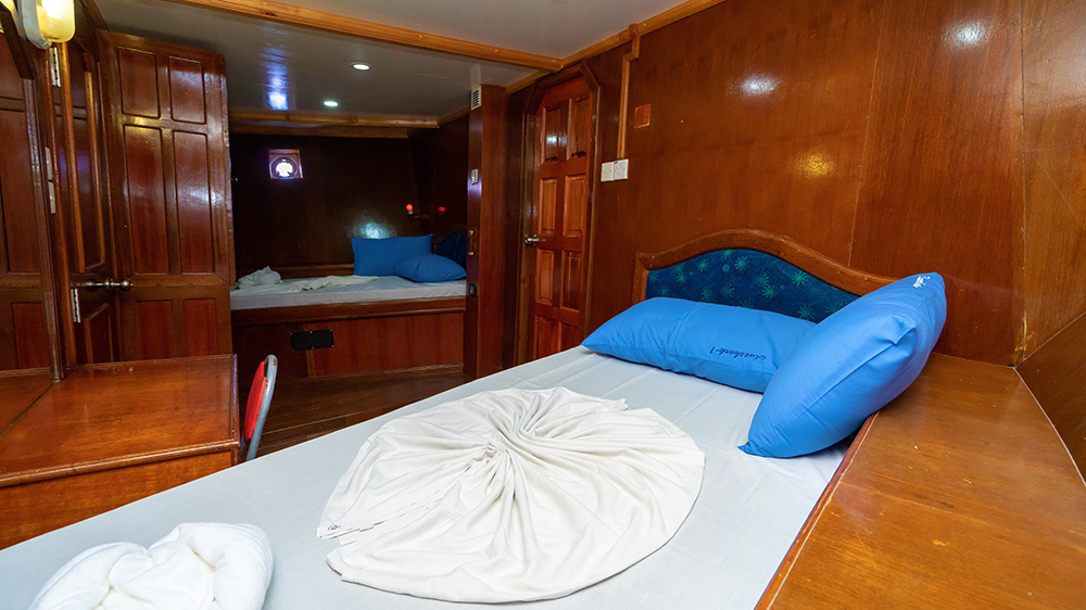 The charter includes a dingy and separate dhoni as standard for surfing and diving.