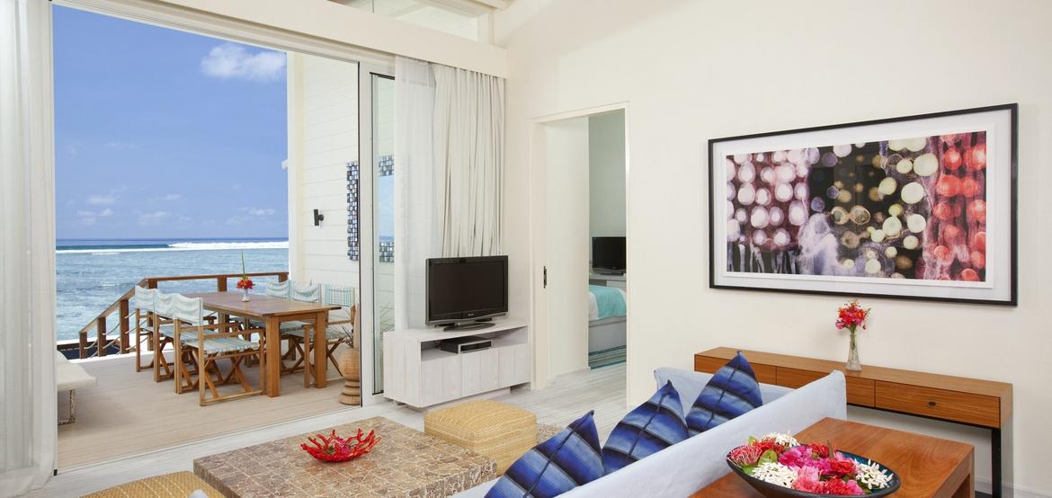 Our 2 Bedroom Overwater Villa offers 170 sqm of luxury with stunning sunrise views. Enjoy spacious living, two serene bedrooms, and a private sundeck with hammock and outdoor dining. Perfect for families or friends seeking comfort, privacy, and unforgettable ocean moments.