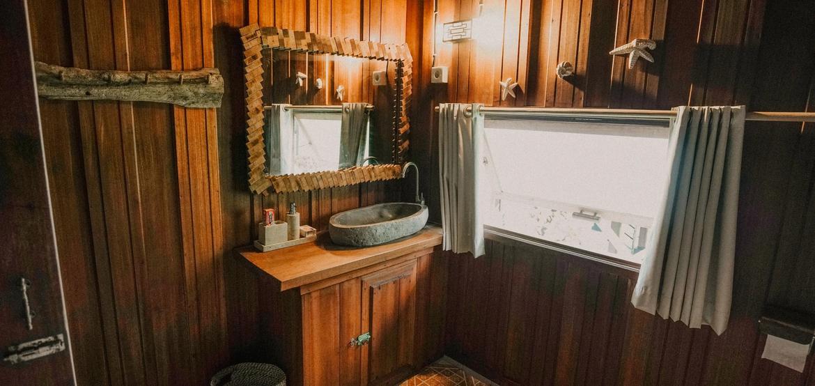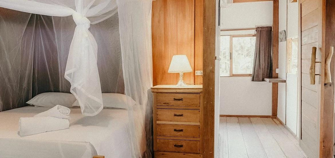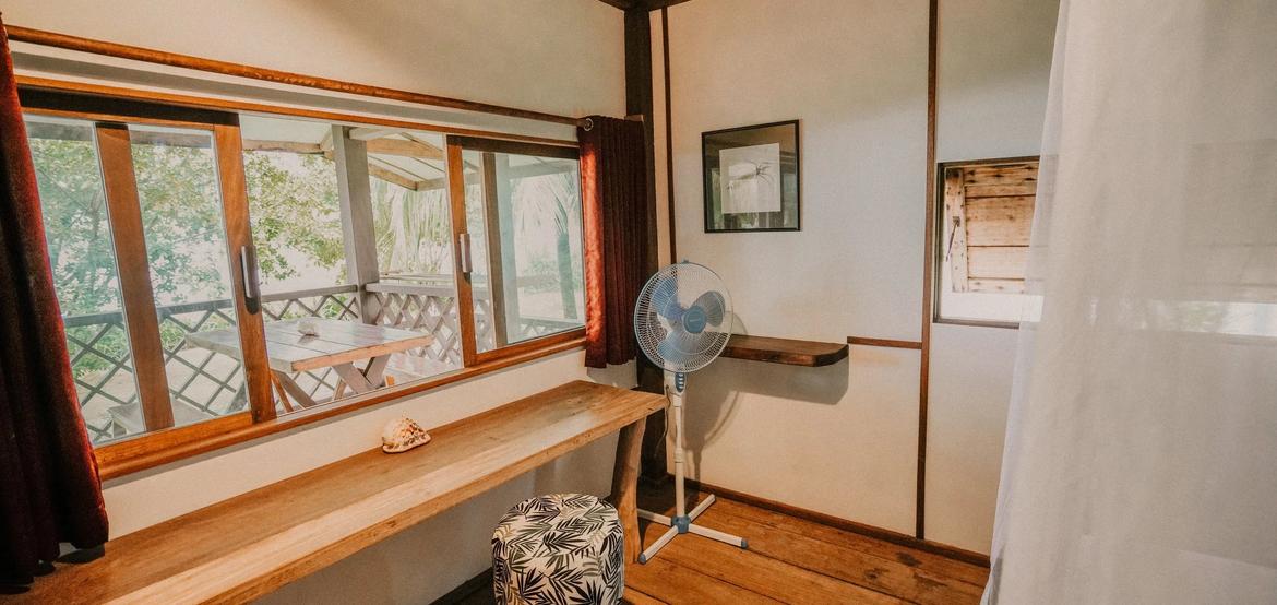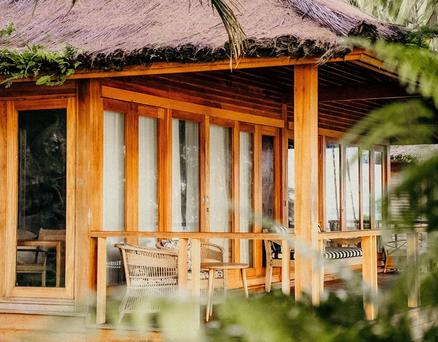A large tiled bathroom sits to the rear with hot water and western toilet. Raised 2.7 m off the ground with big windows, the villas capture natural breezes. Hammocks on the deck and at ground level invite slow time, while a board rack beneath keeps your quiver ready for early starts.