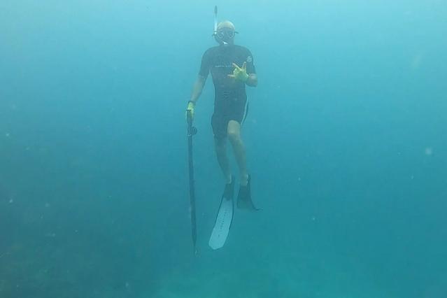 For beginners, the sheltered lee-side beach is ideal—no deeper than ~3 m for the first ~500 m, teeming with species and easy swimming. Experienced freedivers can target the drop-off directly out front, which starts ~50 m off the beach and drops to ~14 m, running about 250 m along a channel toward the waves—plenty of table fish and a rewarding challenge.