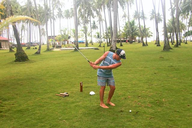 Telos101 boasts the only 18-hole course in Nias province, weaving around the property with sandy traps and tricky greens that keep things interesting for all levels. It’s casual and fun—swing between surfs, enjoy the island breeze, and, of course, break for a cold Bintang along the way.